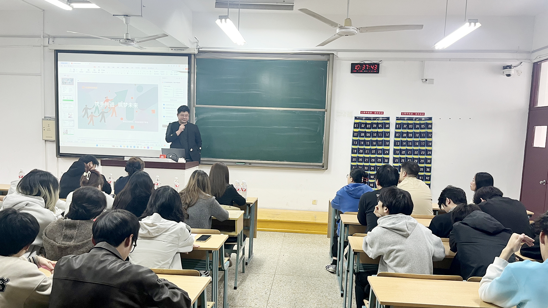 宣讲会环节中,企业人事主管吕梦婷带来了全面而生动的分享。吕总结合精美的PPT展示,系统介绍了企业的成长历程、核心优势和未来愿景,并特别回顾了自校企订单班建立以来,双方在学生联合培养方面取得的显著进展和丰硕成果,并鼓励同学们在求职道路上不断提升学习能力,将个人价值观与职业发展紧密结合。