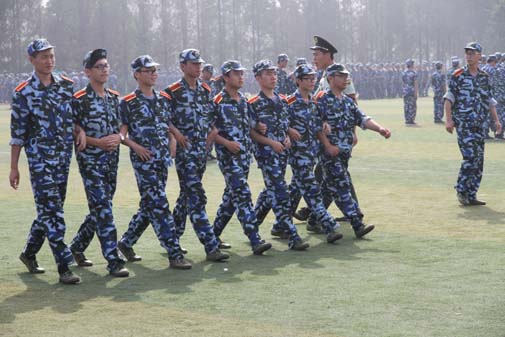 上午八点,伴随着一声响亮的“集合”,新生们迅速而紧张地整理着队列,等待着教官宣布新一天的训练科目。