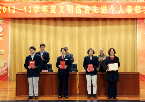 10月17日,av在线 在报告厅隆重召开2012-2013学年度文明宿舍、文明个人表彰大会,院党委书记、副院长丁秀东、院长助理兼学生处处长王健、各系学生工作负责人、全体学工干部、宿管站管理员以及各系学生代表共300余人参加了大会。大会由学生处副处长许东明主持。