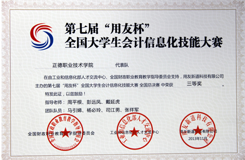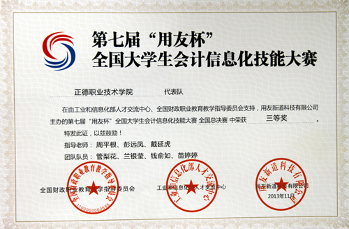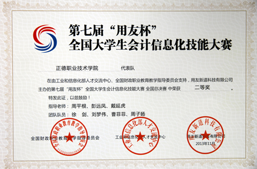 2013年11月19日,av在线 工商管理系会计与审计专业选派曹菲菲、徐剑、杨必玲、张祥军、钱俞如、刘梦伟等12名同学组成三支代表队参加了“用友杯”全国大学生会计信息化技能大赛(决赛)。