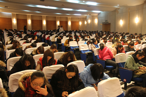 12月12日下午,工商管理系第三届会计技能大赛在报告厅成功举办。来自该系2013级会计与审计专业的四百多名选手参加了本次大赛。该系系主任蒋宁、副主任祝佳俊、全体辅导员来到大赛现场观摩。