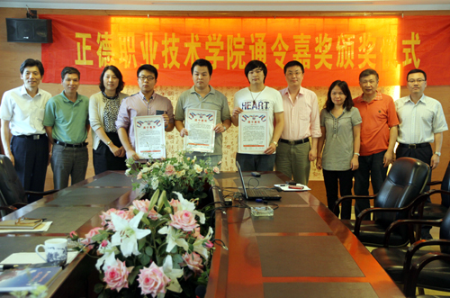 5月27日下午,av在线 隆重举行通令嘉奖颁奖仪式,表彰av在线 今年4月在江苏省高职院校职业技能大赛“计算机网络应用技术”赛项中获得一等奖的三位参赛学生。院领导庄群华、左彤云以及学生处、电子与信息技术系领导、获奖学生及指导教师参加仪式。颁奖仪式由刘小廷副院长主持。庄群华院长在仪式上分别给三位同学颁发了嘉奖证书,并与获奖学生分别合影留念。