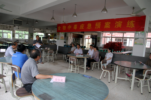 14时30分演练开始,三食堂在发现有人疑似中毒后第一时间向院党政办公室汇报,党政办公室立刻汇报院领导,并通知公共卫生应急领导小组和校园突发事件应急处置领导小组成员单位,第一时间赶往事发地点布置处理。此次演练中,院党政办公室负责所有对内和对外的信息汇总、整理、上报、发布,校内人员和车辆调度;治安保卫处对可疑中毒食物及其有关工具、设备和现场采取临时控制措施,向公安部门报告突发事故情况并请求支援;学生处、团委负责指导相关人员对学生进行教育疏导,稳定思想情绪;后勤处及时组织医务人员进行救治或及时转院,同时与食监、防疫、和卫生机构协调联系。各部门和人员在本次演练中高度重视、统一听从指挥和安排,行动迅速,措施到位。整个演练活动严格按照程序展开,紧张有序,有条不紊。