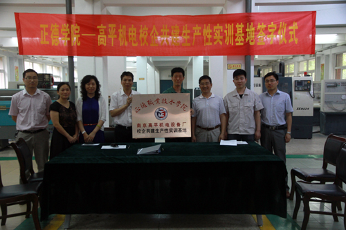 2014年6月6日下午,“正德学院-高平机电校企共建生产性实训基地签约仪式”在av在线 数控技术实训基地隆重举行。副院长刘小廷、教务处长章庆国、机电工程系主任马金平、南京高平机电设备厂总经理周金明参加了签约仪式。