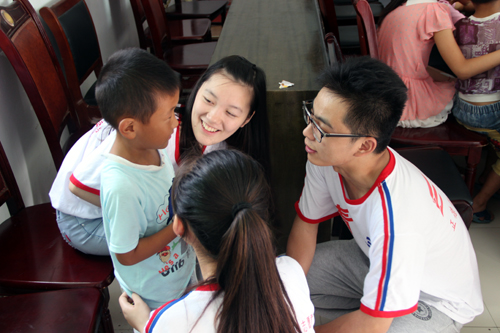 赴淮安支教学生与留守儿童谈心(资料图片)