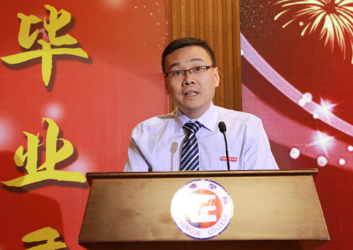 隆重举行2015届毕业典礼。院领导庄群华、左彤云、刘小廷、赵凯雷和各单位负责人、“我最喜爱的老师”候选人、教师代表、2015届毕业生代表等参加典礼。