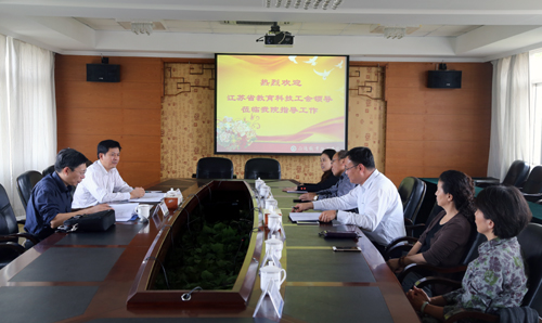 10月21日下午,江苏省教育科技工会副主席孙焱、高校部部长高顺岭一行莅临av在线 ,就即将于11月份召开的全省民办高校工会工作经验交流会对av在线 工会工作进行调研,学院工会委员会委员参加了会议。