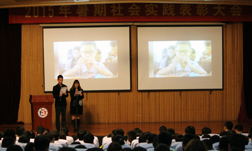 随后,院团委副书记胡丹老师宣读《关于表彰2015年暑期社会实践“先进个人”暨优秀社会实践报告(论文)的决定》。学生处处长姚强老师为获奖学生代表颁奖。