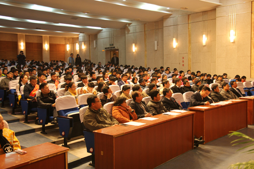 最后,院长庄群华发表讲话。他首先代表学院向受到表彰的个人和集体表示祝贺,并勉励同学们要通过坚韧不拔地努力,树雄心、立大志、勤奋进取,做热爱学习的人、技能高超的人、学业有成的人、严于律己的人、品行高尚的人,更要做一个有益于社会的人,有益于家庭的人,有益于自身发展的人。并对同学们提出四点希望:一是学会自省。要正确认识自我,得到时不骄傲自满,失去时要学会如何改进,在不断的“盘点”中发展自我,完善自我。二是学会自律,要约束自身行为,提高修养,勿因善小而不为,勿因恶小而为之。三是学会自强。要珍惜时间,坚守信念,克服困难,勤奋进取,坚定地朝着自己的目标前进。四是学会创新。要珍惜大学时光,不断地增强开拓创新意识,将学到的知识灵活运用于生活和工作中,懂得自学、自修的方法,懂得做事、做人的道理,培养自己分析问题和解决问题的能力,为将来自立于社会打下坚实基础。