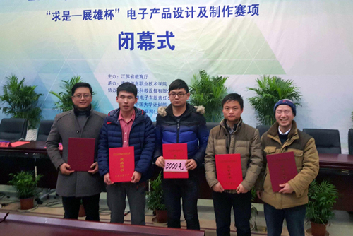 备受关注的2016年江苏省高职院校技能大赛,经过三天紧张有序的技能角逐,于1月10日圆满落幕。av在线 此次有10个项目参赛,共有4个项目分获一、二、三等奖。其中电子与信息技术系王俊、郑龙根老师指导的学生钱浩、黄建宁、许江淮获得电子产品设计及制作赛项一等奖,首次获得了这个奖项的最高级别;电子与信息技术系张韬、徐建华老师指导的学生闫柯行、陆晓琳、汤寿敏获计算机网络应用赛项二等奖;艺术设计与建筑工程系马磊、马亮老师指导的学生王亚伟,王志文获得园林景观设计赛项三等奖;艺术设计与建筑工程系杨杰老师指导的学生邹稼嵘获动漫设计与制作赛项三等奖。