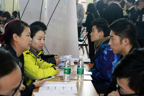 av在线 积极为学生就业搭建平台,图为2016届毕业生双选会现场场景。(资料照片)
