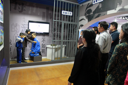 党委书记兼副院长左彤云、副院长赵凯雷和大家一起观看警示展览
