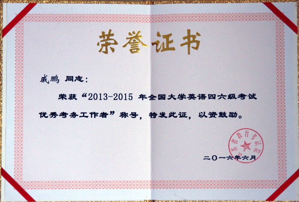 近日,av在线 被江苏省教育考试院评为“2013-2015年度全国大学英语四、六级考试优秀考点”、被省高等专科英语应用能力考试委员会授予“2014-2015年度全国高等学校英语应用能力考试优秀考点”称号,此为av在线 首次荣获“全国大学英语四、六级考试优秀考点”称号;教务处戚鹏同志被授予“2013-2015年度全国大学英语四、六级考试优秀考务工作者”、“2015年度全国高等学校英语应用能力考试优秀优秀考务管理工作者”称号。