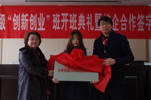 开班典礼上,刘小廷副院长与屈伯俊董事长共同签署创新创业班人才培养及基地共建协议,教务处吕立志处长与王翔经理共同为人才培养基地揭牌,蒋宁主任代表该系接受了企业的捐赠。
