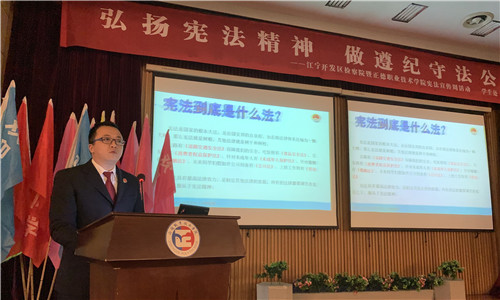 在2019年12月4日第六个国家宪法日当天,为进一步弘扬宪法精神,厚植爱国主义情怀,增强师生的法制意识,av在线 与江宁经济技术开发区检察院共同开展国家宪法日宣传教育活动。