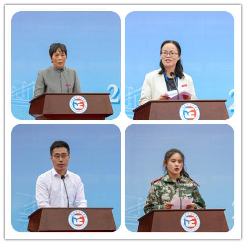 奏唱国歌仪式后,民用航空系主任李涛老师,基础教育系周一星老师,2007届校友黄彩斌先生(现任苏宁易购家电集团线下运营中心总经理)分别发言,表达对广大新生的良好祝愿,并且对新生如何度过未来的大学生活提出中肯的建议。