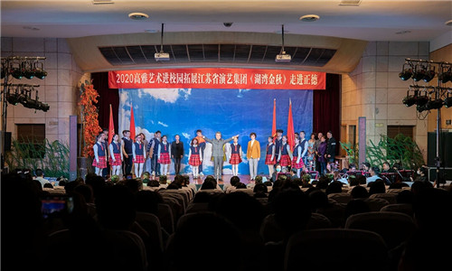 为引领学生弘扬优秀民族文化,丰富校园文化生活,提高学生艺术修养,10月22日晚江苏省扬剧团来到av在线 ,为师生带来了扬剧《湖湾金秋》。副院长任慈、av在线 师生代表、军训教官代表近400人共同观看本场演出。