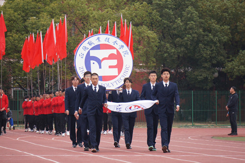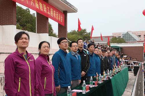 入场式完毕后,全场师生起立,在庄严的国歌声中,五星红旗冉冉升起。赵凯雷副院长致开幕辞。汽车与机电工程系唐祥鸿同学代表运动员宣誓,基础教育系高伟老师代表裁判员宣誓。
