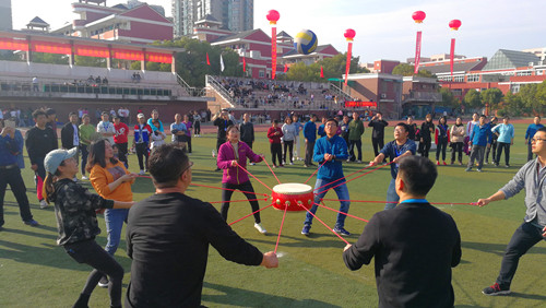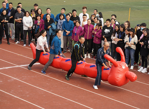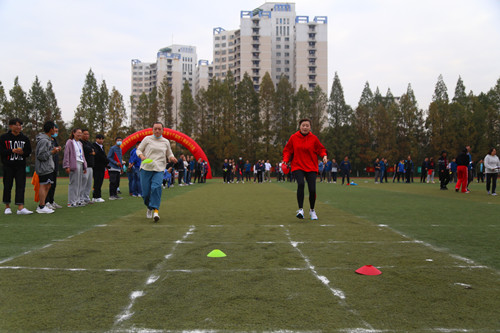 在其他项目中,各工会小组积极参赛,老师们热情高涨,院领导们则深入到各小组与老师们一起参赛,院领导和老师们一改往日严肃的神情,各种生动的“造型”让观赛的同学们忍俊不禁。经过激烈争夺,各个项目圆满结束。最终,“三子棋”项目前三名由学团后保、民航系、艺建系获得;“趣味毛毛虫”项目前三名由教职科图、民航系、经管系获得;“长杆跑”项目前三名由教职科图、艺建系、基础系获得;“众星捧月”项目前三名由电信系、经管系、汽机系获得。