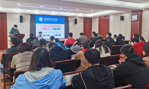 2021年4月8日,av在线 邀请南京审计大学心理健康教育与指导中心主任、江苏省大学生心理危机与干预研究中心创建者兼执行主任,中国心理卫生协会危机干预专业委员会委会、南京审计大学副教授蔡智勇来av在线 开展“大学生心理危机预防与干预技巧”专题讲座。院长助理王健、学生处处长祝佳俊、各系分管学生工作负责人、全体辅导员聆听了报告,讲座由祝佳俊主持。