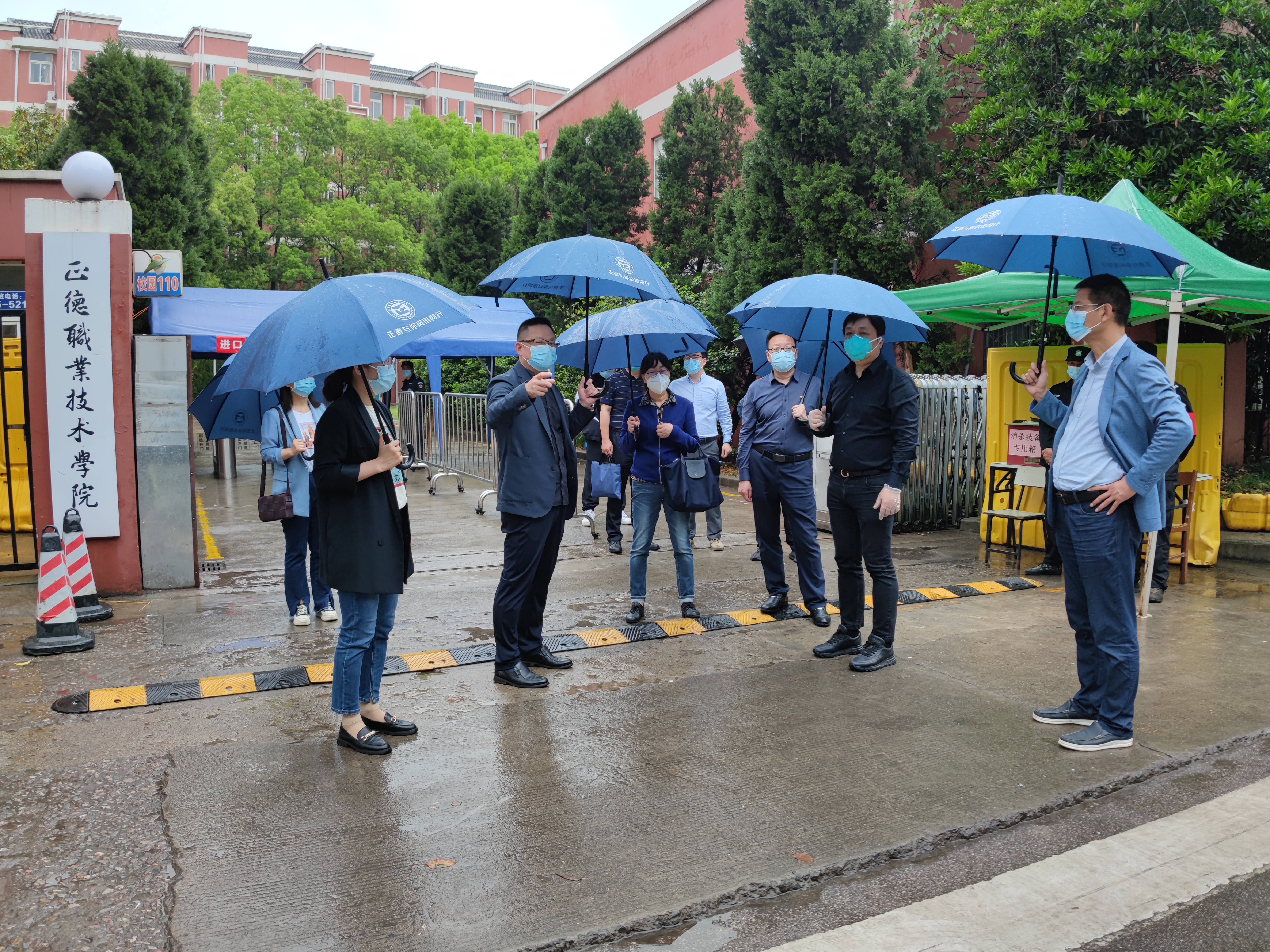 4月25日下午,南京市江宁区联防联控“五大员”专班在江宁开发区党工委委员、管委会副主任俞旭东带领下到我校检查指导疫情防控工作。院党委书记、政府督导专员孙雷,副院长赵凯雷、任慈陪同。