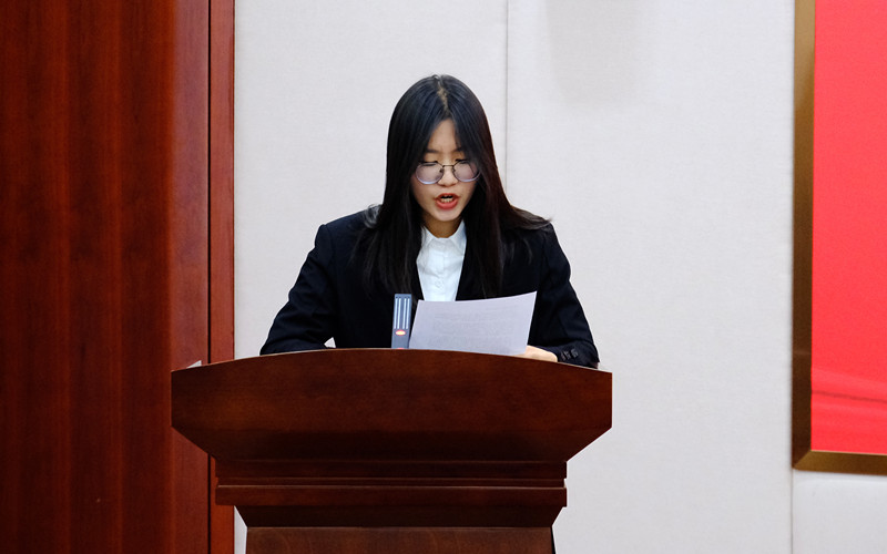 经济与管理系王骁代表本期培训班学员作交流发言,班级指导教师俞婧童介绍了本期青马工程培养方案和考核办法,祝佳俊宣读《关于表彰av在线 第十一期“青年马克思主义培养工程”暨学生骨干培训班优秀学员的决定》并为学员代表颁发荣誉证书,祖国为十二期“青年马克思主义培养工程”暨学生骨干培训班授旗。