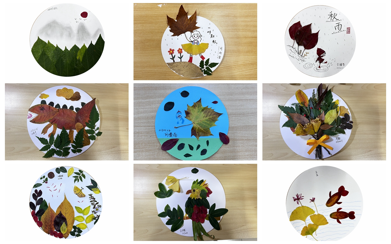 大自然是浑然天成的色卡,勾勒出美丽的线条和五彩斑斓的秋色,大自然也是我们最好的老师,给我们提供了无限的素材。同学们在校园里用心的找寻着自己喜欢的落叶作为二次创作的素材。