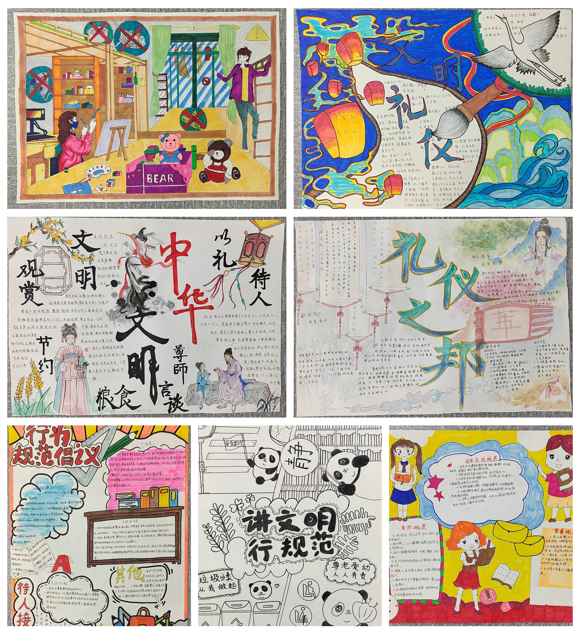 活动期间,基础教育系组织同学们设计制作自己宿舍特有的宿舍铭牌和“文明礼仪”为主题的手工作品,以此加深学生对文明宿舍的深入理解和践行。宿舍铭牌和“文明礼仪”手抄报的制作由宿舍长和宿舍同学共同讨论并制作完成。各宿舍同学积极响应活动,设计出符合自己宿舍特色的宿舍铭牌和一幅幅构思精巧的手抄报,用不同的方式表达出自己对宿舍文化的理解。