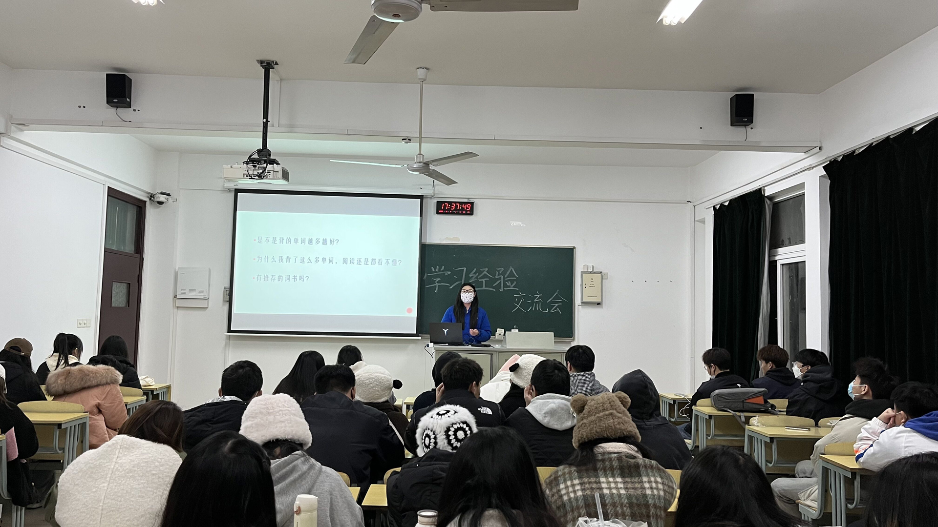 交流会正式开始,新闻班王丹妮同学首先发言,王丹妮同学就英语学习误区和学习方法之间的关系发表了演讲,用“勤奋”“计划”“心态”三个关键词总结着自己的成功,并将自己背单词、写作的小技巧和一直在用的软件分享给大家,沈琦同学向大家介绍了自己的问题学习法和番茄学习法,做到心与心的沟通,呼吁大家在学习时注重劳逸结合,正确处理压力。