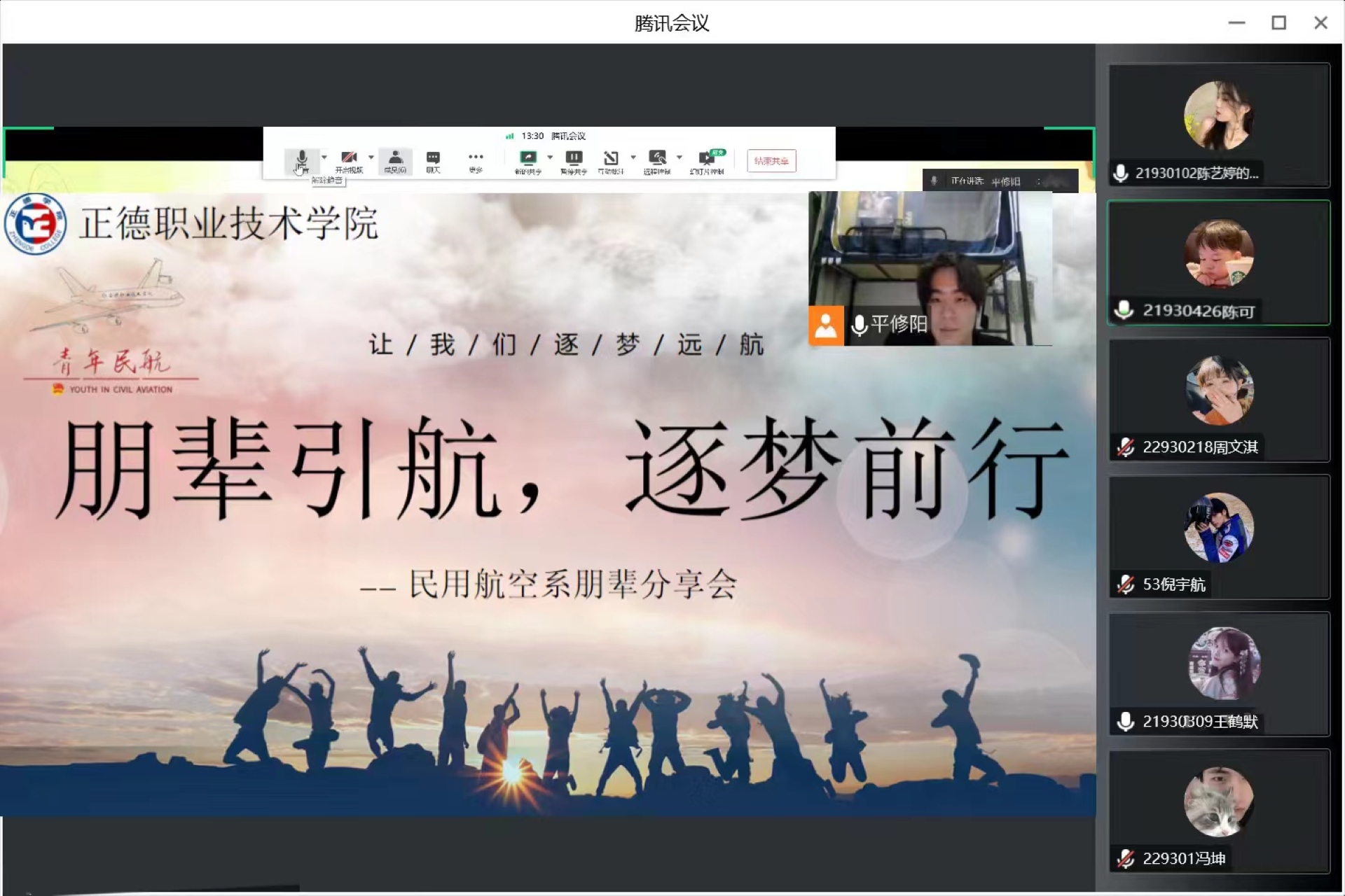 为了进一步发挥朋辈引领作用,聚焦学业发展规划和学习生活经验分享,2022年12月8日下午,民用航空系在线上举行朋辈引航分享会,会议主要聚焦学业规划和学习能力提升,同时也分享校园生活的感受。分享会邀请了2020级空中乘务专业的平修阳,通过线上直播的方式,向参会的学弟学妹分享他们在大学生活、学业和志愿等方面的经验,并为学弟学妹们的大学生活提出宝贵的建议。