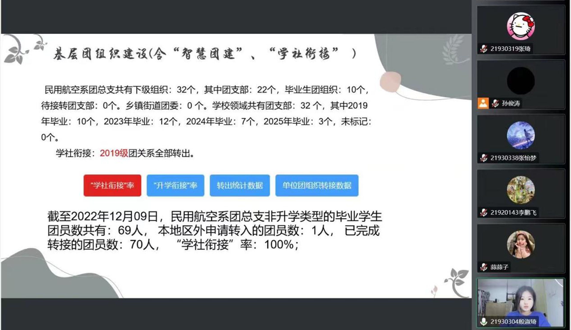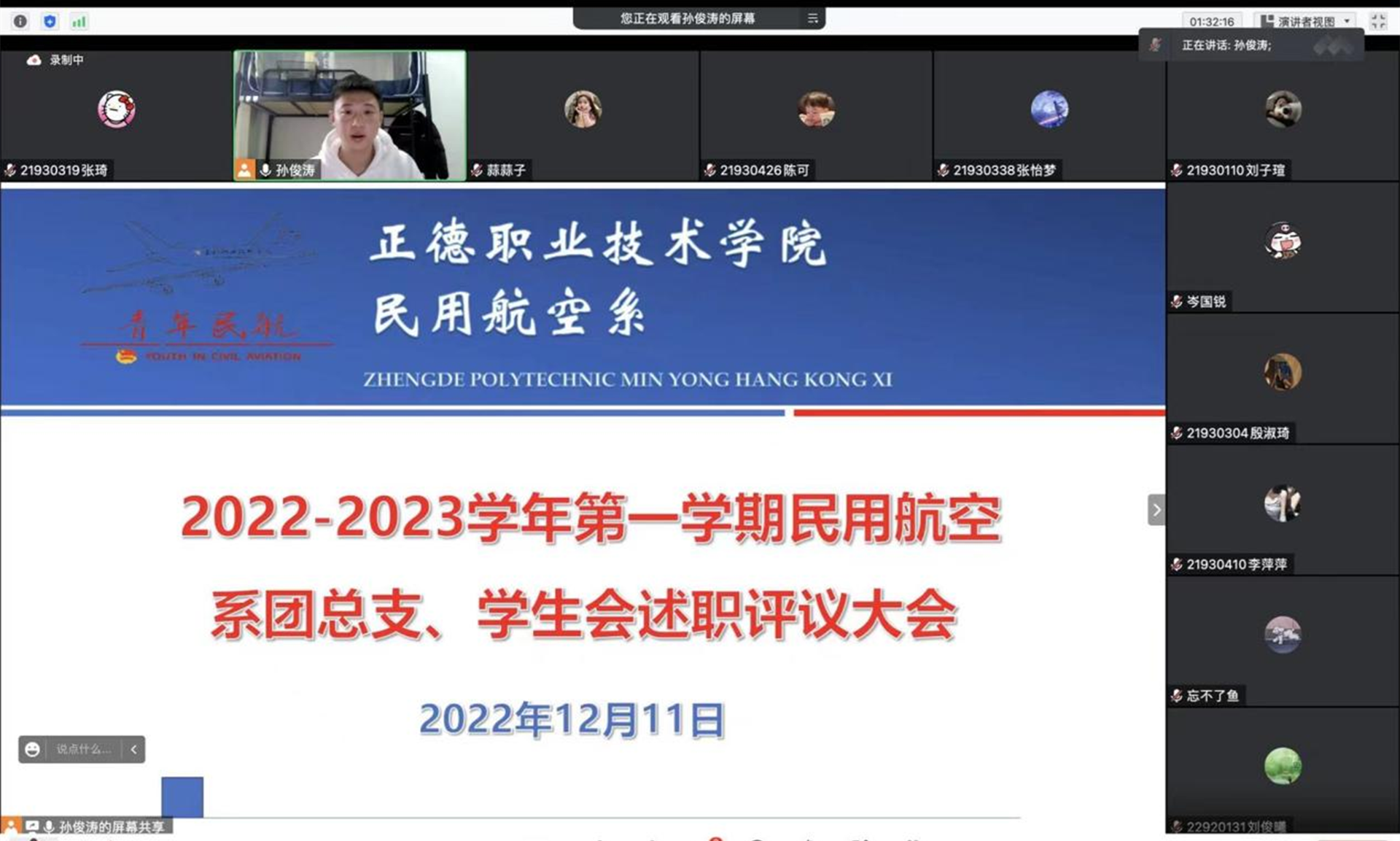 为深入推进学联学生会组织改革,全面加强对系学生会工作人员的管理,提高学生会工作人员服务同学的意识和履职能力,发挥学生代表大会代表的监督职责,按照共青团中央、教育部、全国学联联合印发的《学联学生会组织改革方案》《关于推动高校学生会(研究生会)深化改革的若干意见》等文件精神,民用航空系于2022年12月11日在线上召开民用航空系团总支、学生会开展2022-2023年度述职大会暨表彰大会。