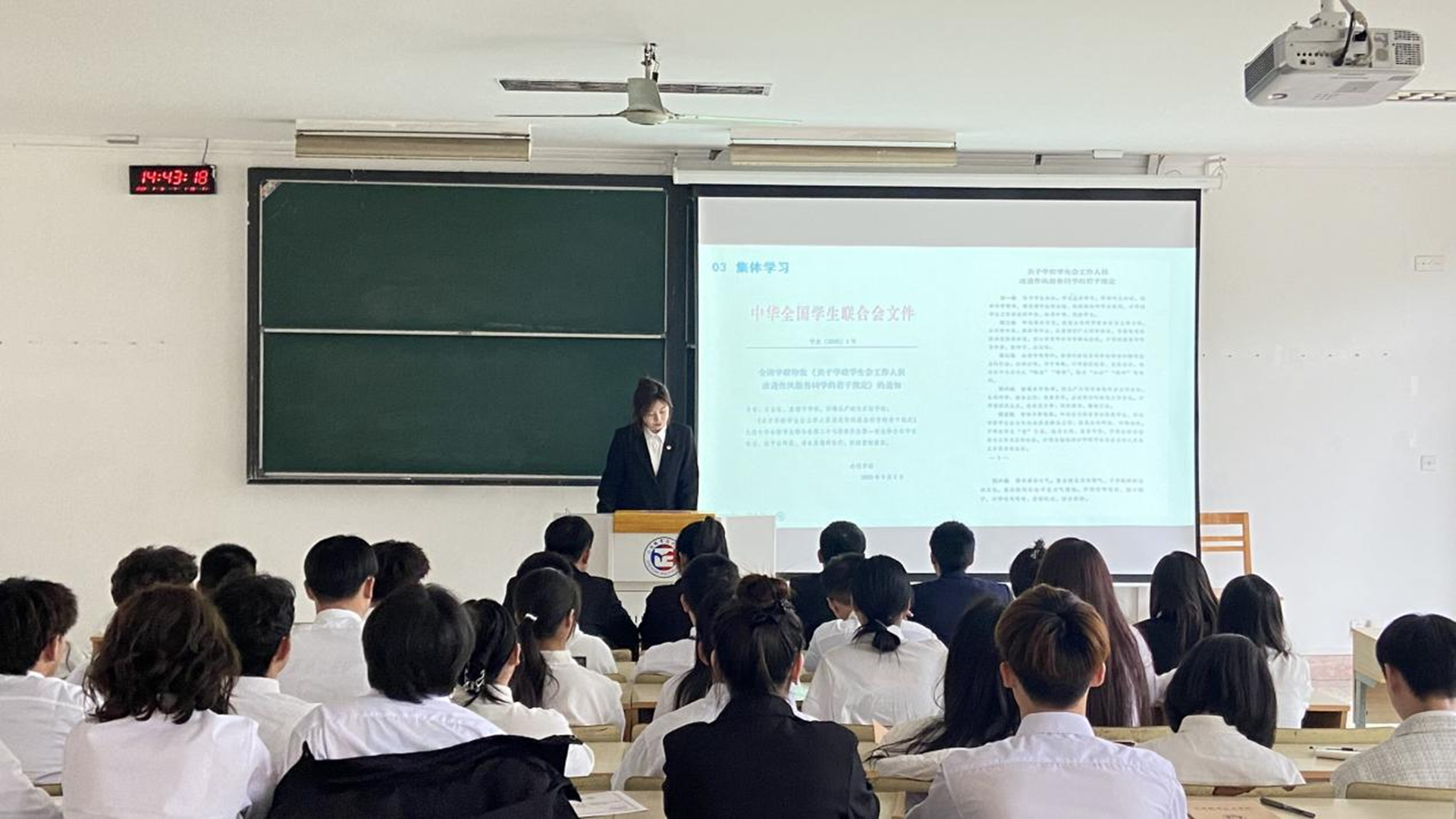 会上,对上学期学生会工作进行了表彰。陈瑶对上学期学生会干部的表现给予了充分的肯定,对大家的积极态度及奉献精神进行了表扬,但也指出了在工作方式方法、服务意识等方面存在的问题。同时,对新学期学生会的工作进行了部署和要求:一是要树立规矩意识和底线思维;二是要有高度的集体荣誉感,凝心聚力干工作,团结一致共提升;三是要树形象、做表率,处处严格要求自己;四是要在工作上出彩,在新学期即将开展的多项活动中拿成绩、争一流;五是要织密网格,及时发现并反馈问题。最后希望全体干部在新学期再接再厉,奋发有为,不断践行服务同学的宗旨,提升服务同学的能力,汇聚青春力量,助力院系发展,继续发挥榜样带头作用。接着虞骏卿就学生会的性质及任务、加入学生会的目的是什么、如何做好学生干部、学生干部应具备的思想觉悟、行为表现、与时俱进、审美观念等内容进行论述。虞骏卿强调,学生会干部是学校的先进分子,是自愿为同学服务的积极分子,所有学生会干部在提供服务的同时,也在不断提高自己的工作能力和管理水平。最后,他希望每一位学生会干部都能积极上进,以身作则,当好标兵,做好先锋,突出表率作用,努力提高自己的工作能力,做到工作、学习两不误。最后学生会集体学习《关于学联学生会工作人员改进作风服务同学的若干规定》。