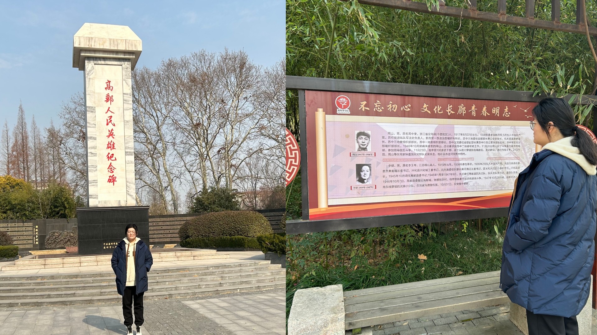 唐振华同学利用假期时间去往了高邮市烈士陵园。她一一走过人民英雄纪念碑、烈士墓区、英雄广场、烈士纪念馆,心情久久不能平静,崇敬和缅怀之意油然而生。通过走访参观,她深深感受到一个有希望的民族不能没有英雄,一个有前途的国家不能没有先锋!她说,“烈士们用鲜血和生命换来了今天的和平和幸福,作为新时代的大学生,应该继承烈士遗志,更加发奋图强。珍惜先辈们负重而行换来的岁月静好”。