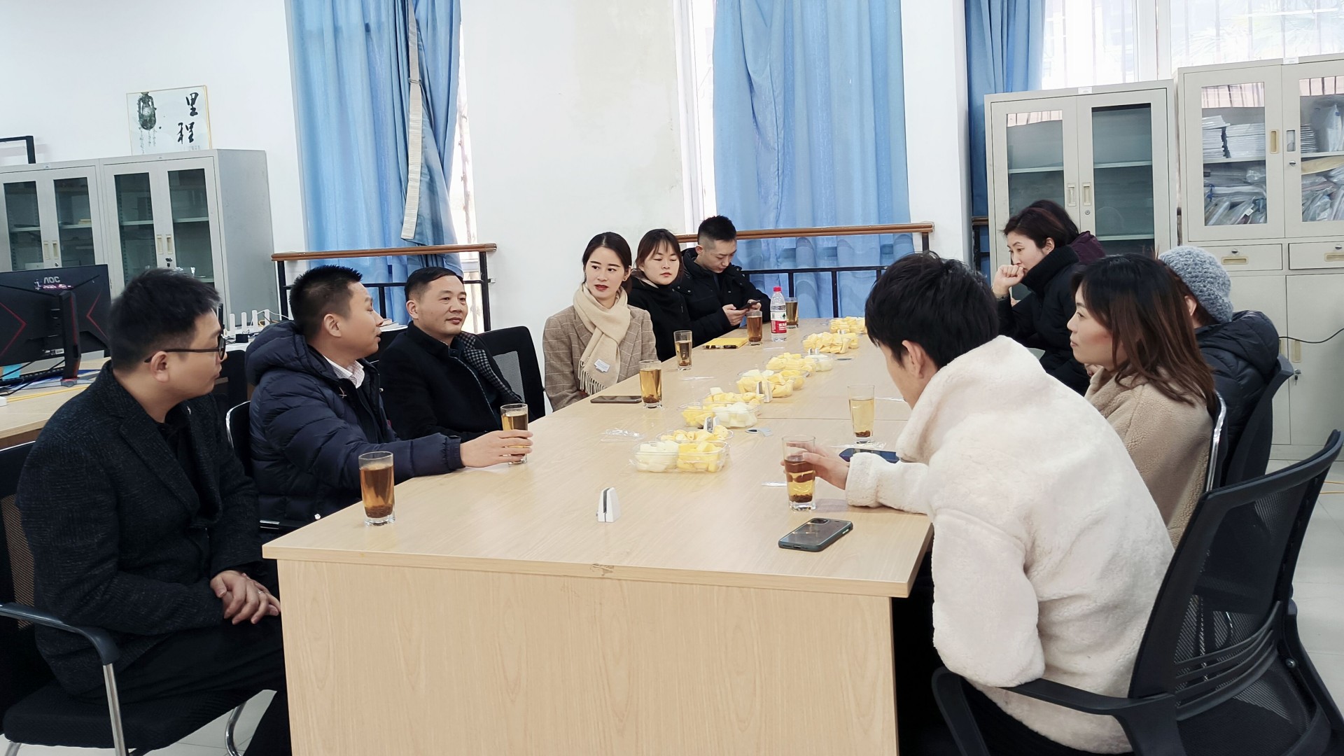 2月17日下午,在副院长江爱华的指导与关心下,经济与管理系副主任(主持工作)李家唸带领八位专业教师前往南京智信科技有限公司(以下简称智信科技)考察。智信科技总经理张家源先生热情接待,陪同参观了设在钟山职业技术学院的直播基地和实训教室,李家唸一行从行业发展、团队组建、服务面向、直播运营等方面详细了解了电商直播专业的实习实训开展情况。