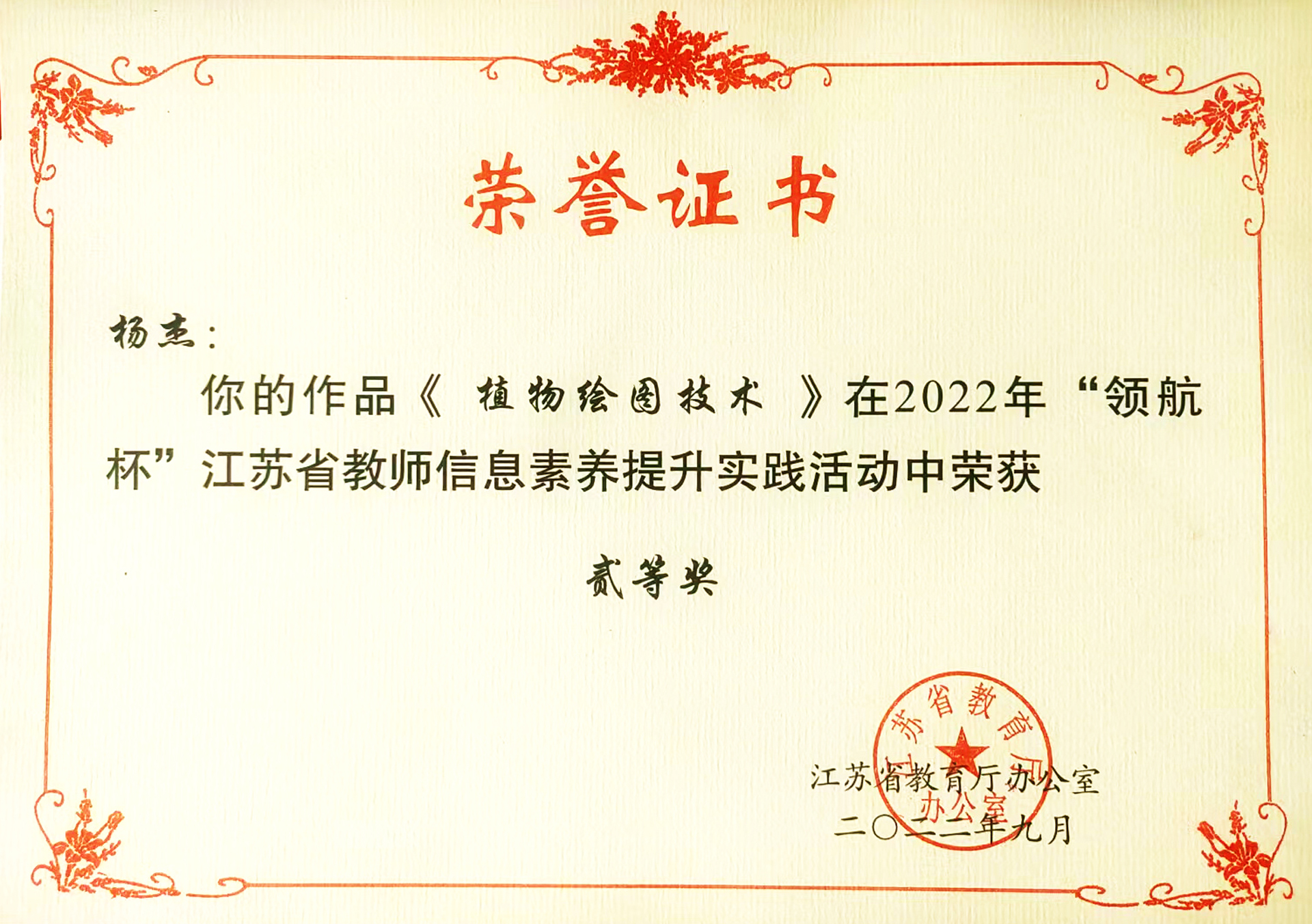 本次活动的主题是以习近平新时代中国特色社会主义思想为指导,围绕加快教育现代化、建设教育强国、办好人民满意的教育,以“推进教育数字化战略,促进教育高质量发展”为主题。杨杰老师此次荣获的“研讨作品”依托在研的江苏省教育信息化研究专项课题《基于虚拟现实技术的植物形态解剖课程教学实践与研究》,总结历年来的比赛经验与技术手段,不断探索数字化教学的边界,选取了教学重点难点作为内容,聚焦实际、突出主题。