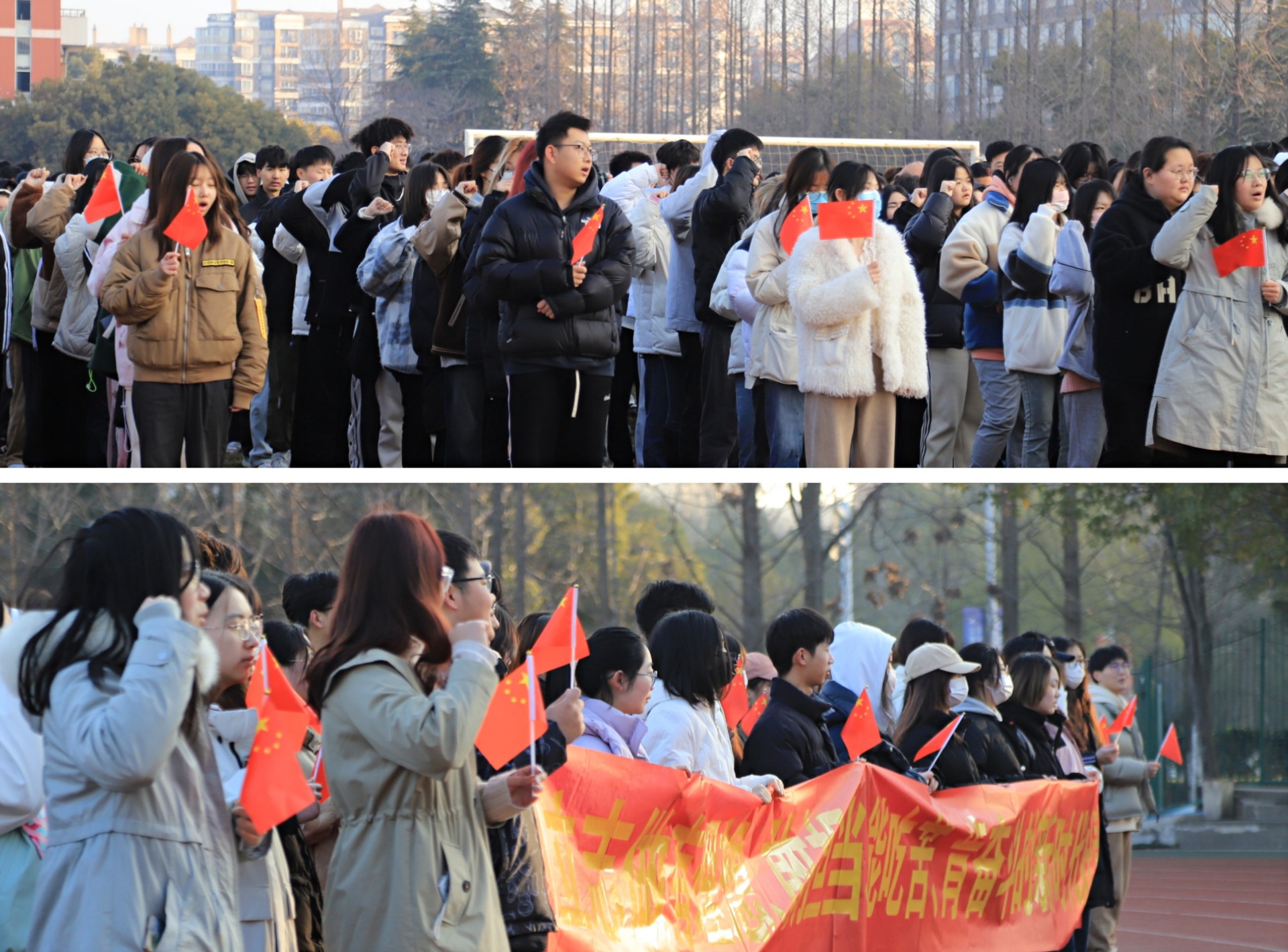 朝暾初露,晨光绚丽。2月27日上午,艺术设计与建筑工程系在学校田径场举行了“青春心向党 建功新时代”升国旗仪式。系党支部书记陈宏波、大一全体辅导员及全体学生参加升国旗仪式。辅导员廖晶晶老师担任国旗下的讲话。