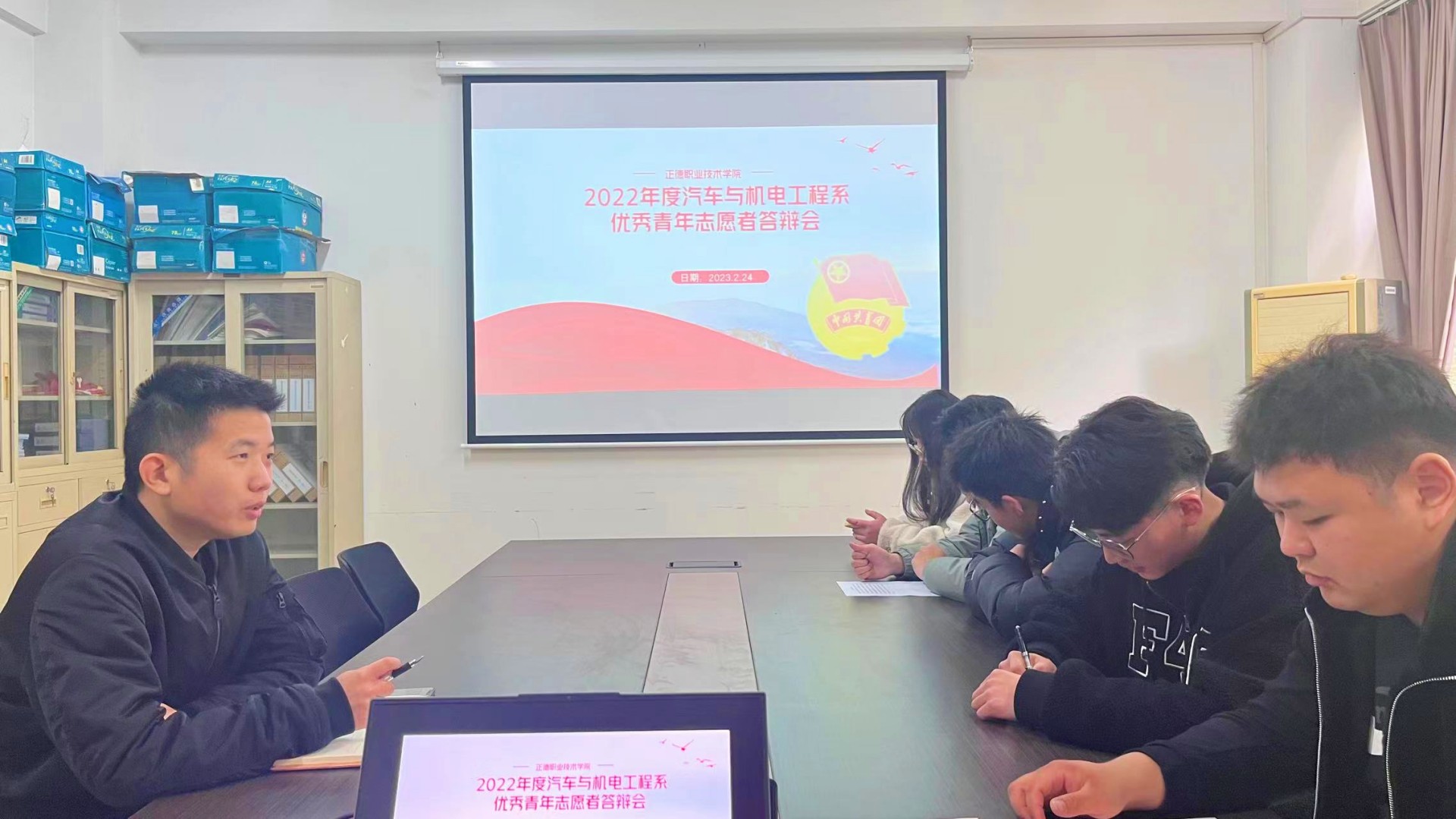 为深入学习贯彻党的二十大精神,扎实推进志愿服务工作。2023年2月27日,下午13时,汽车与机电工程系在7210会议室开展了系部2022年优秀志愿者答辩会。汽机系志愿服务团队出席本次会议,由团总支书记李浩文主持。