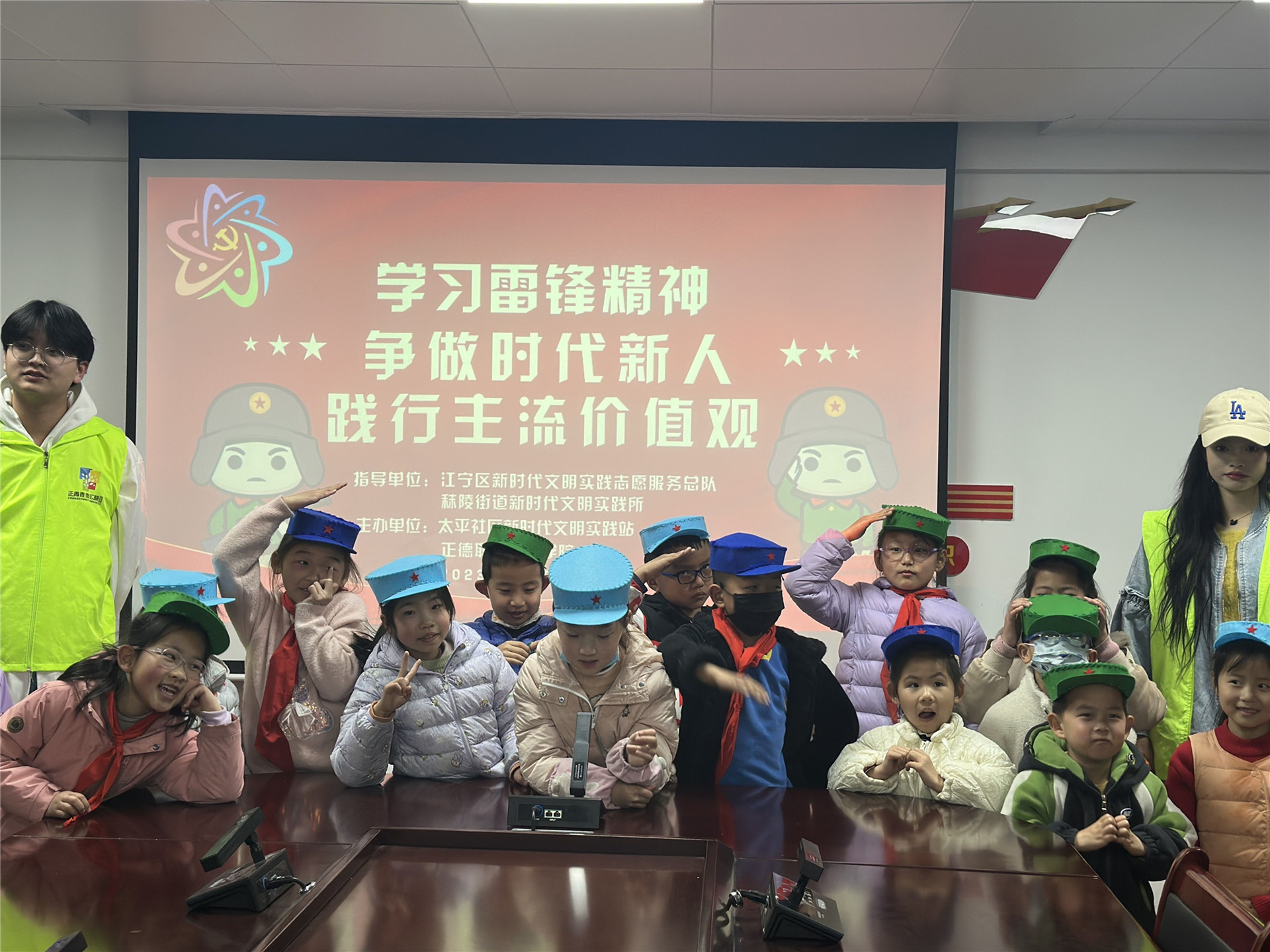 3月2日下午5点,志愿服务队来到秣陵街道太平社区,带领社区的小朋友们学习了雷锋的光荣事迹和雷锋精神。在学习完雷锋精神后,志愿者带领小朋友们做雷锋帽,大家相处十分融洽,小朋友们也在本次活动中学习到了雷锋精神,并锻炼了动手能力。