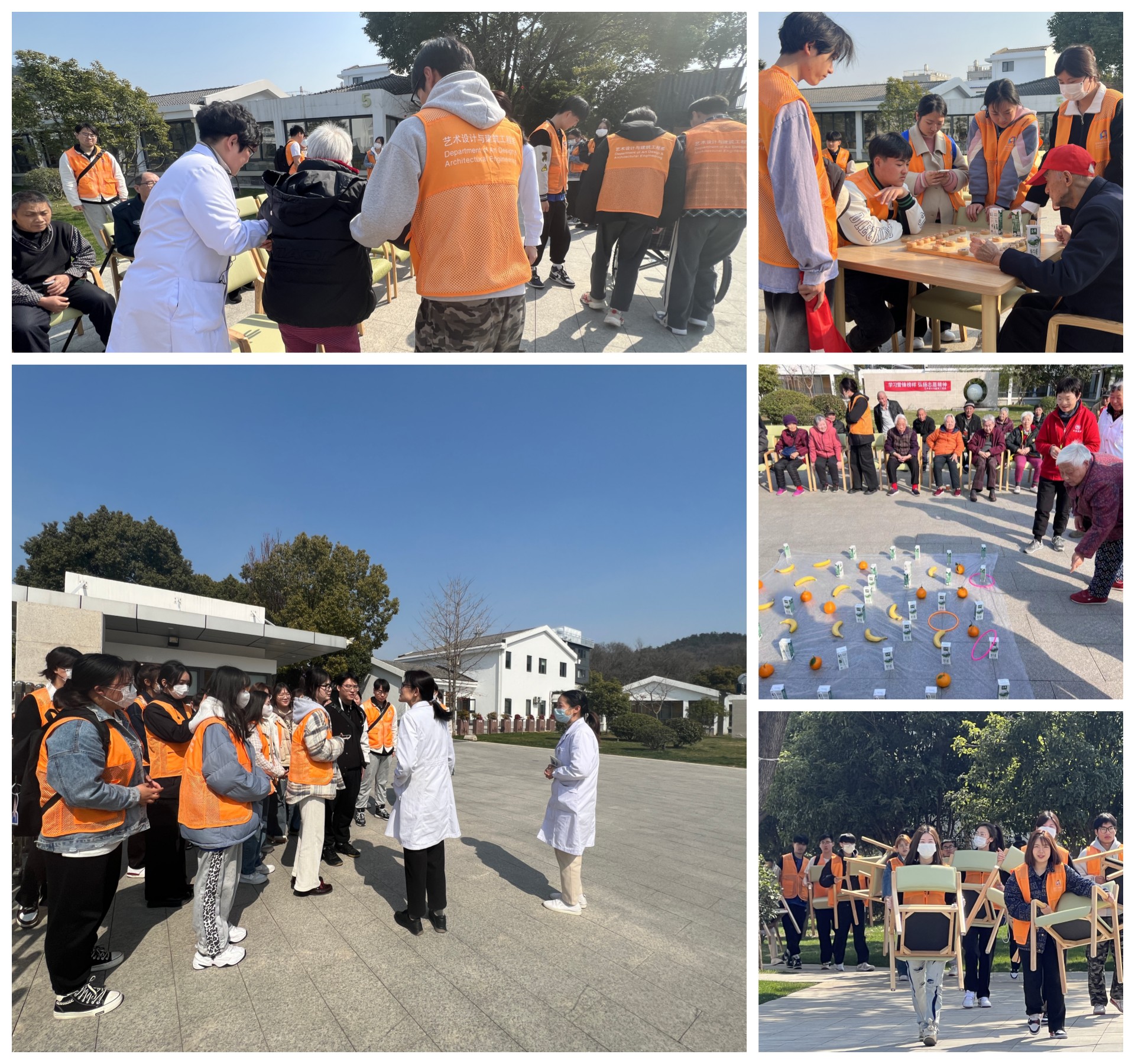3月4日下午,艺术设计与建筑工程系30余名志愿者抵达和怡韩府山颐养中心。颐养中心姜院长给志愿者们介绍了老人年轻时候的事迹,志愿者为老人们献唱红歌;带领老人做拍拍操、八段锦;与老人们一起进行管道传球和套圈的小游戏。