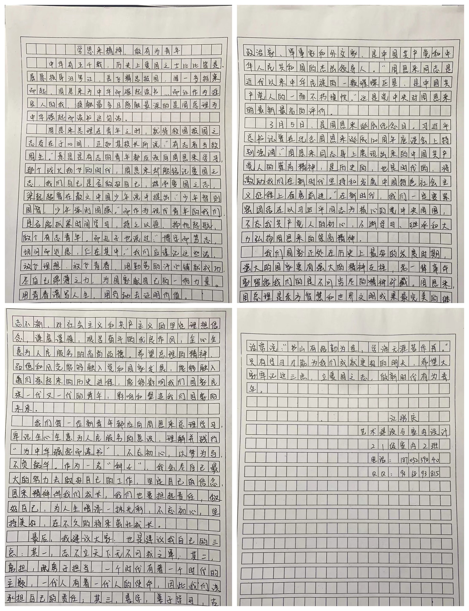 《学总理做有为青年》征文活动中,我系学子积极参与活动中。
