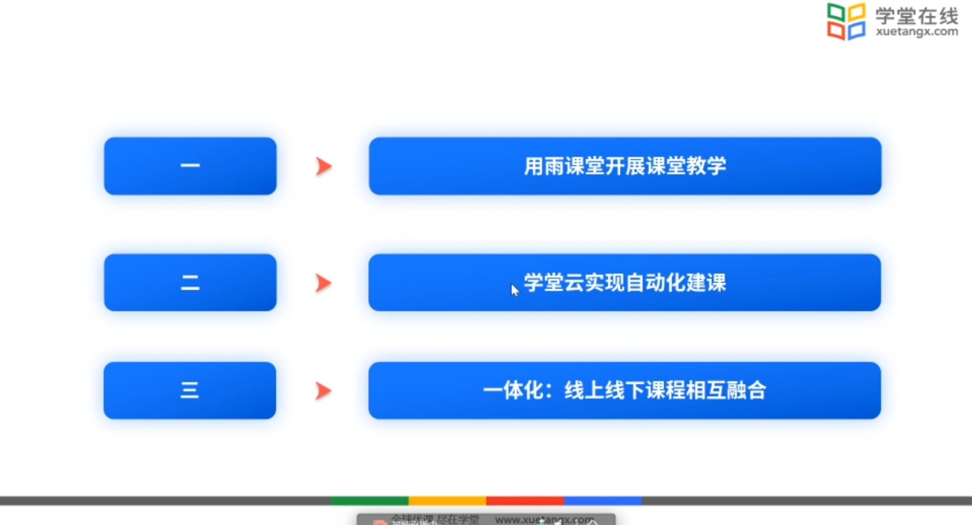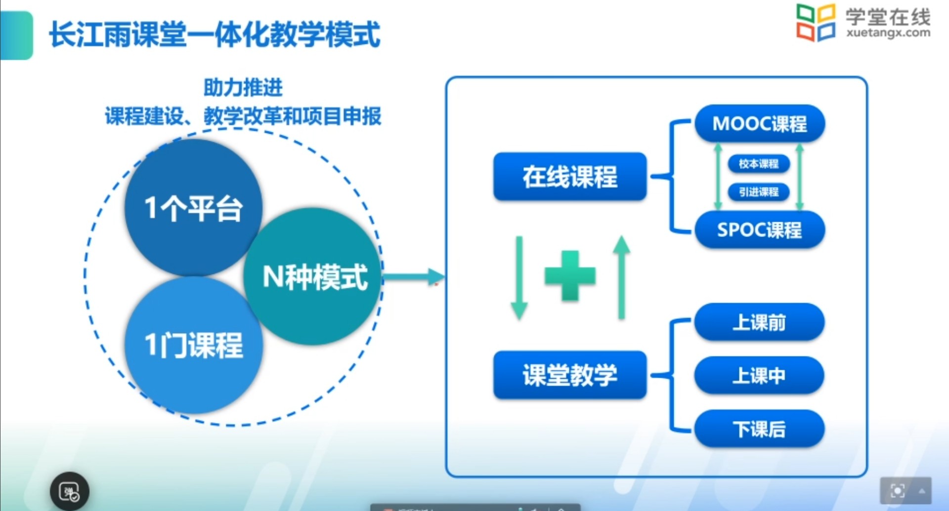主题为“长江雨课堂助力线下课堂教学”的培训详细介绍了长江雨课堂6.0版本新功能:课堂报告解析、音视频直播、多画面并存教学等功能;主题为“如何进行在线课程的创建与应用”“基于一体化平台开展新学期的智慧教学”的培训着重介绍了雨课堂学堂云一体化平台:如何使用学堂云进行课程资源建设、利用雨课堂进行线上线下的教学设计和使用“雨课堂+学堂云”实现线上线下教学一体化。