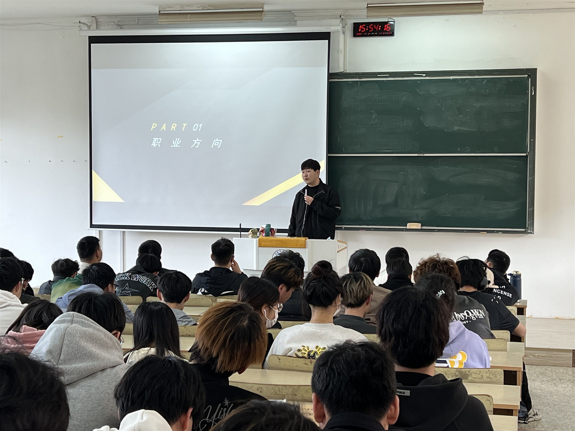 讲座从职业方向、就业分析、业内解读三个方面向同学们分析了当今大学生创业就业中常遇到的问题,李泽明结合自身事例,从大环境上出发,向同学们提出了可行的就业建议。