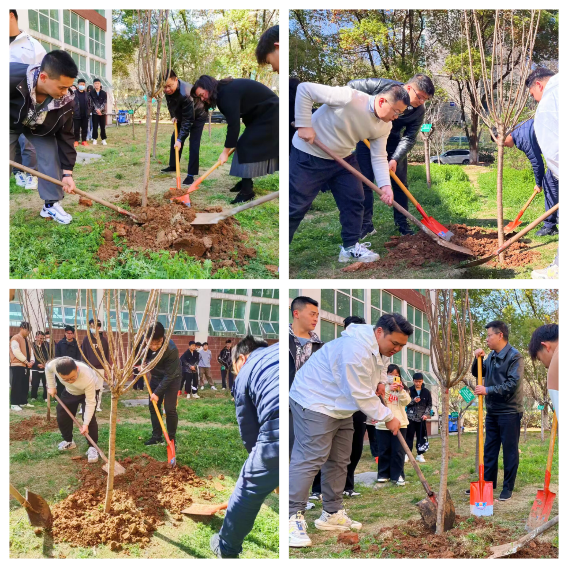 在后勤处园艺师傅的指导下,此次活动老师与学生一起参与。大家抡锄挖坑,培土围堰,挥锹培土,彼此合作,最后大家与樱花树合影,记录这珍贵的瞬间。