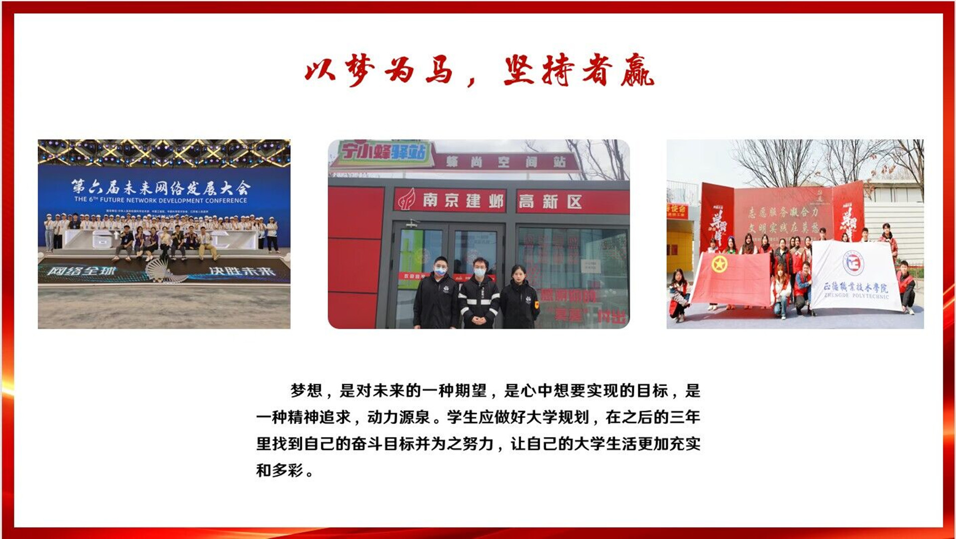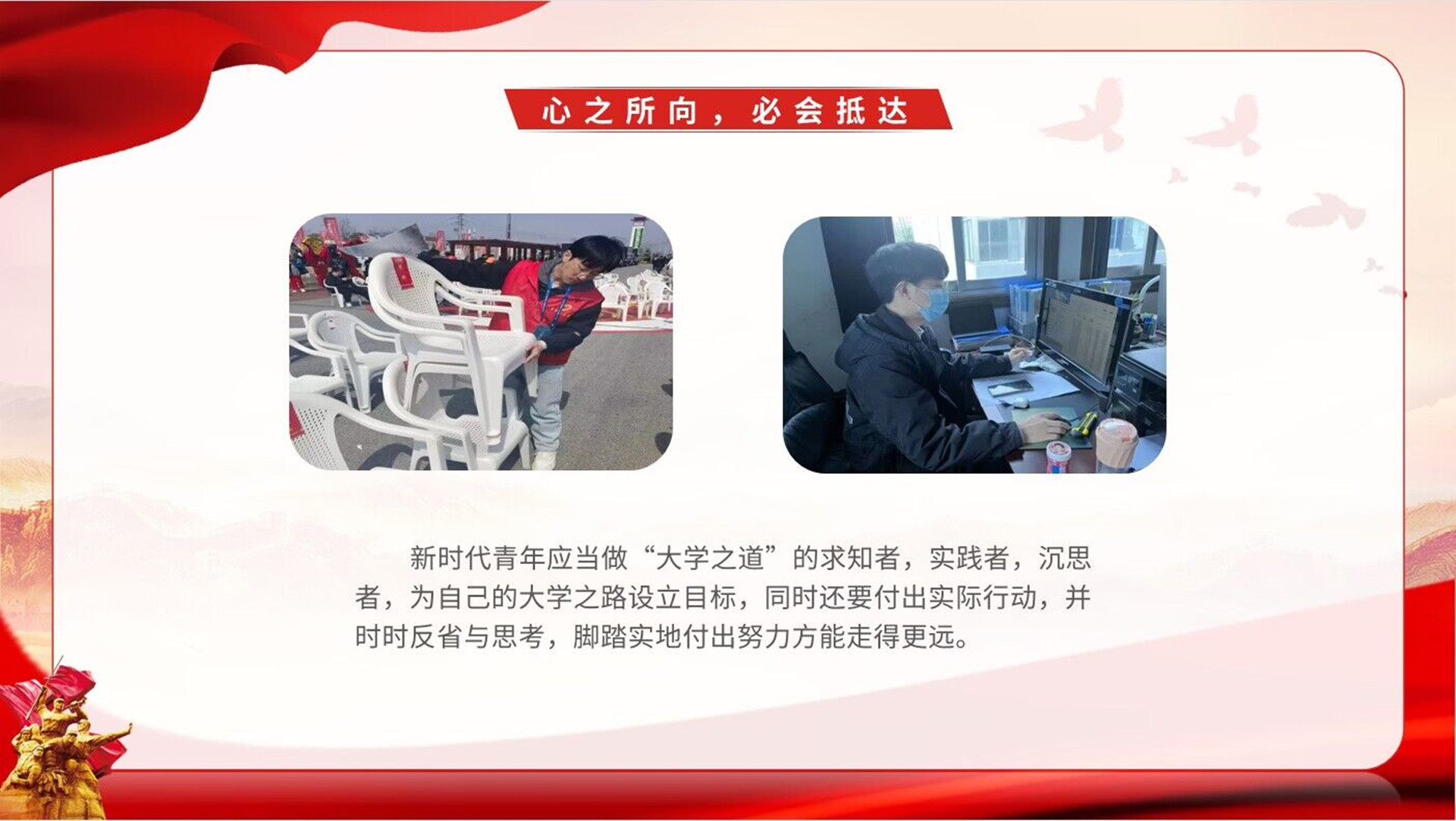 梦想,是对未来的一种期望,是心中想要实现的目标,是一种精神追求,动力源泉。为帮助同学们明确自己的未来规划,弘扬伟大梦想精神,鼓励同学们提高自身素养,电子与信息技术系于3月22日18时在1104教室举办以“生而逢盛世,青年当有为”为主题的梦想公开课,本次课程特邀我系2022届优秀毕业生姜潇帆和2021级优秀学生戴立志主讲。
