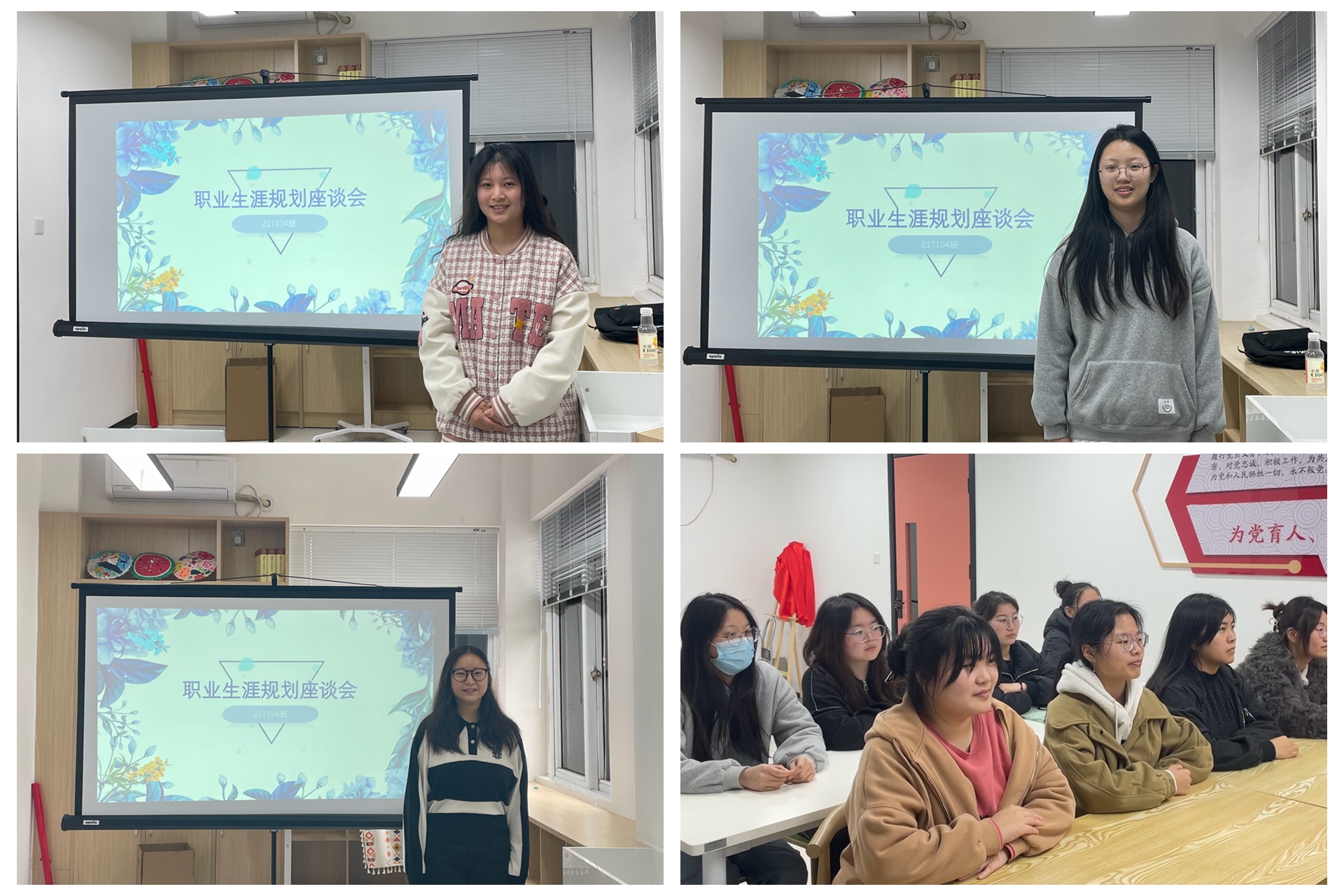 听完学姐的分享后,部分同学也主动分享了自己所向往的实习岗位以及实习期里的一些规划和安排。陆雨欣同学讲到她理想的实习单位是幼儿园,希望能通过自己的努力成为一名优秀的幼儿教师,为了这一目标,在后期实习过程中,充分利用好实践机会不断提高自己的专业技能和职业素养,并努力考取幼儿教师资格证书、保育员、育婴师等证书来增加自己在社会立足的底气。曹书畅还将和同学们分享了自己毕业后的创业理想,首先她计划毕业后继续深造学习,不断增长自身能力,并学习其他国家的育儿方法,当自己有足够的知识储备及能力的时候,开始着手创办自己的幼儿培训机构,她将为会自己的这个梦想努力奋斗。