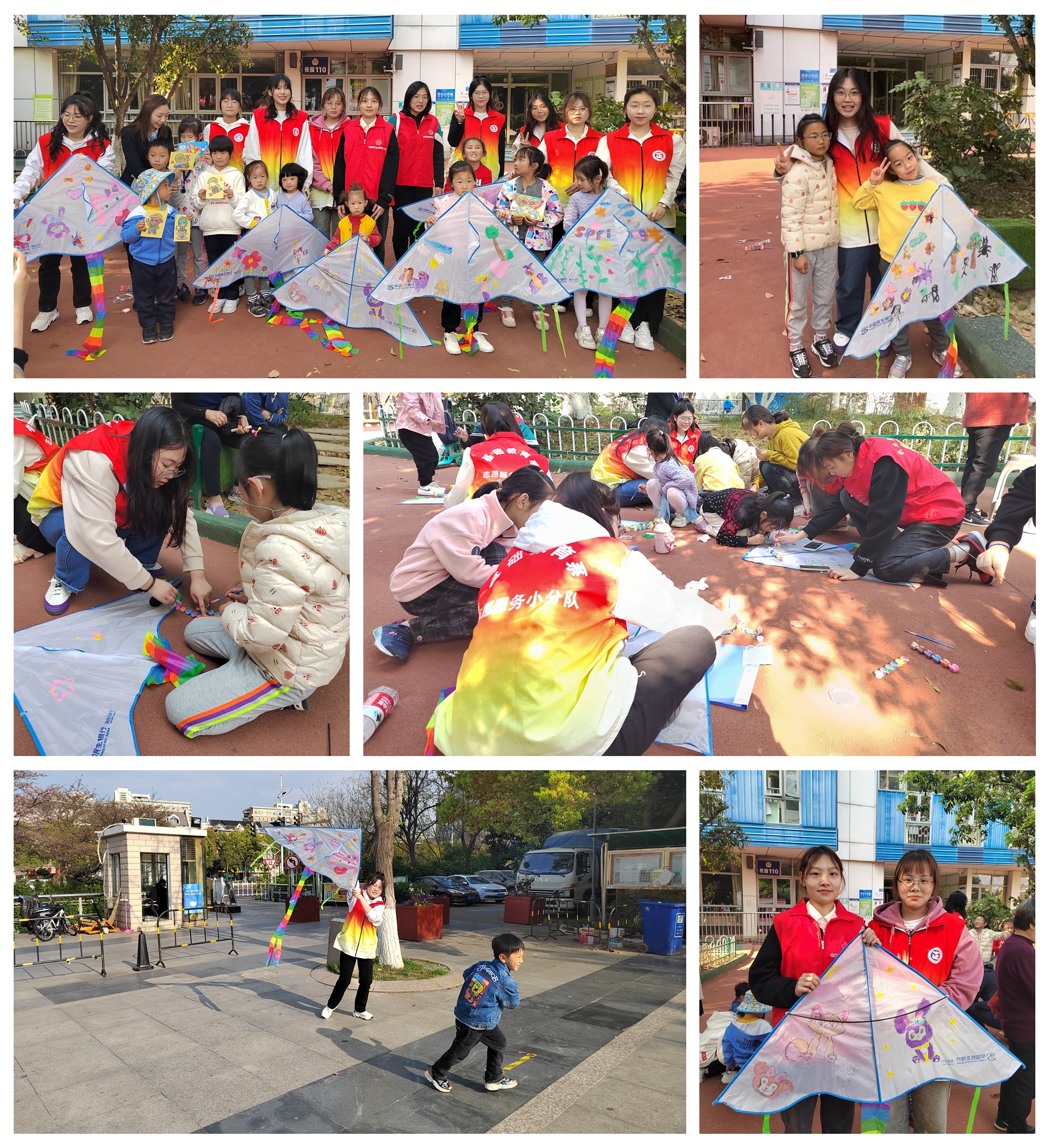 放风筝是清明习俗之一,志愿者们带领孩子们一起通过手绘风筝,让她们更加了解传统文化。孩子们拿起画笔在风筝上勾勒、描绘、涂鸦,制作出一个个色彩斑斓的彩色风筝。风筝制作完,志愿者们又带着孩子们风筝拿到社区小广场放飞天空,遥寄相思。