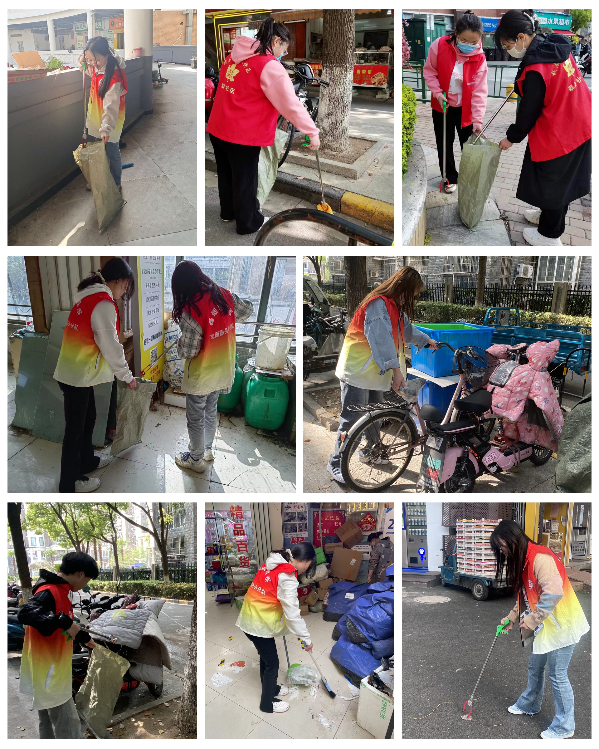 同学们身着志愿服,在托乐嘉街区形成一道亮丽的风景线,烟头、塑料袋以及废纸等等,同学们穿梭在街区人行道和台阶上,仔细捡拾,同时也将不规范摆放的电动车按序摆放整齐。同学们发扬不怕脏不怕累的精神,对托乐嘉街区进行了一次彻底的净化。经过两个小时的清扫,同学们表示在这次志愿服务的劳动实践中体会到了劳动的意义与价值。接下来将定期组织学生进社区开展各类志愿服务活动。