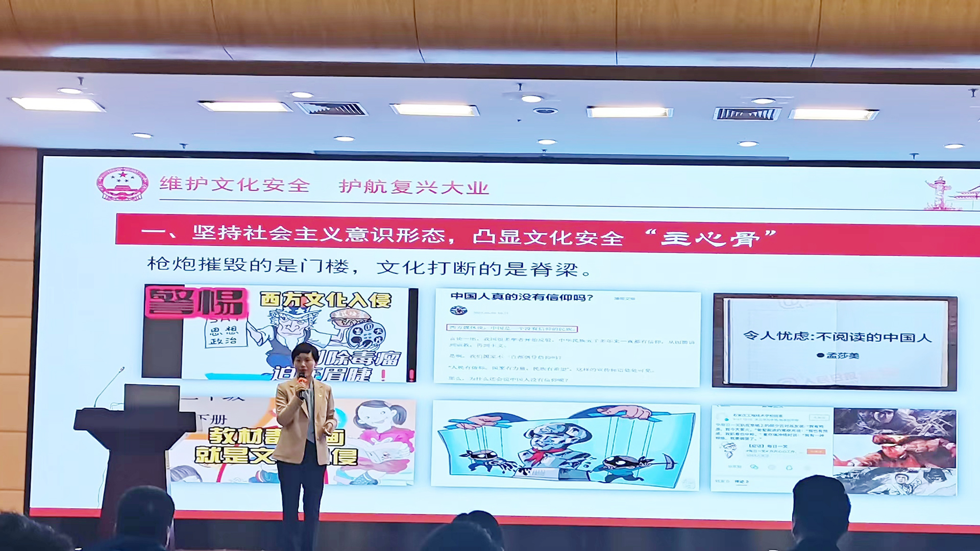 苗秀娟、彭爱华两位教授亲自起草宣讲稿。宣讲稿从文化安全入手,强调了有效应对思想文化领域风险挑战、加快构建新安全格局具有的重要意义,并从坚持社会主义意识形态,凸显文化安全“主心骨”;坚定文化自信自强,把稳文化安全“定盘星”;弘扬中华优秀传统文化,守正文化安全“动力源”三个方面展开论证,阐明了如何有效维护文化安全,护航复兴大业的途径。大家一起对宣讲稿和课件进行反复打磨,逐字逐句斟酌,一张图片、一个动画地完善。李颖老师甚至提前两天前往比赛现场熟悉场地,进行试讲。整个备赛过程充分体现了团队合作的力量。