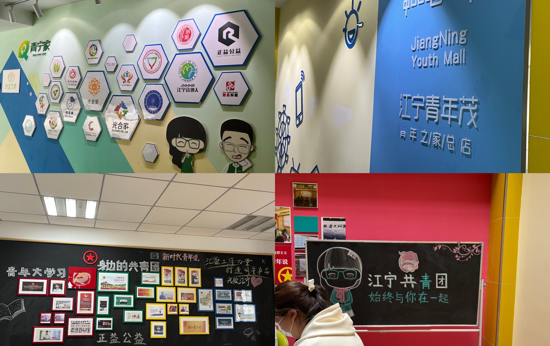 活动开始同学们首先一起参观了青年茂总部青年学习大讲堂、江宁区青年志愿者指导中心、青年公益领袖营、社会组织青少年创新项目工作室、社会组织发展中心、心理咨询室、艺术课堂等。江宁青年茂是江宁共青团社会资源与工作力量的总部基地,全区青年之家总部。这里既是直接联系服务青年、培育孵化青年社会组织的阵地,也是青年组织充分发挥组织功能、精准服务共青团和青年工作的重要载体。
