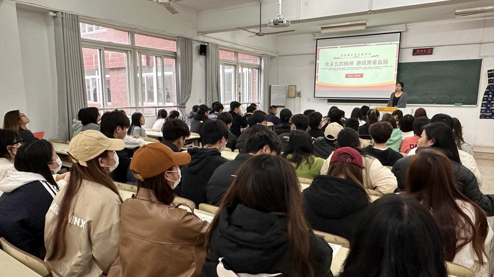 开展“传承五四精神,赓续青春血脉”主题团课。加强学生理论学习,进一步坚定青少年永远跟党走,为国做贡献的信心和决心,激励广大青年坚定信仰,砥砺品德,珍惜时光,勤奋学习,追逐青春理想。